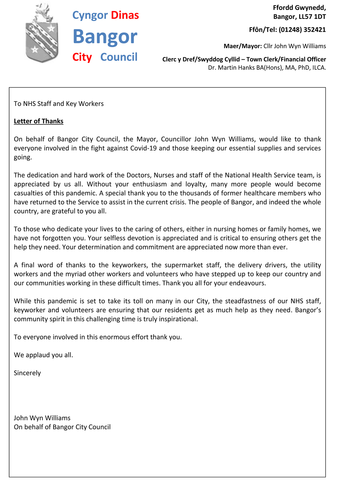 Responding to the Welsh Government announcement on 12th March, Mayor of Bangor Cllr John Wyn Williams said: