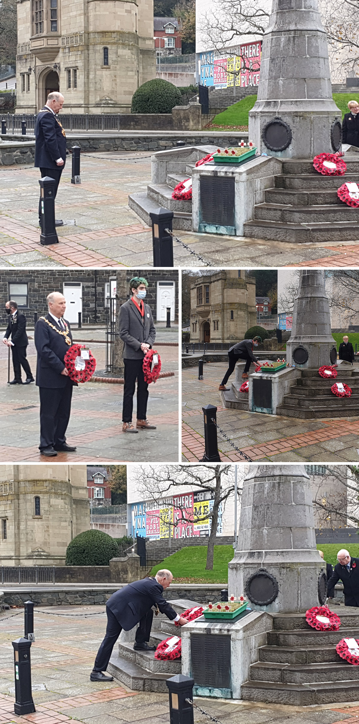 The Mayor of the City of Bangor, Cllr Medwyn Hughes laid a wreath at the War Memorial on behalf of the City Council and its residents, paying tribute to the fallen with deep respect and gratitude.